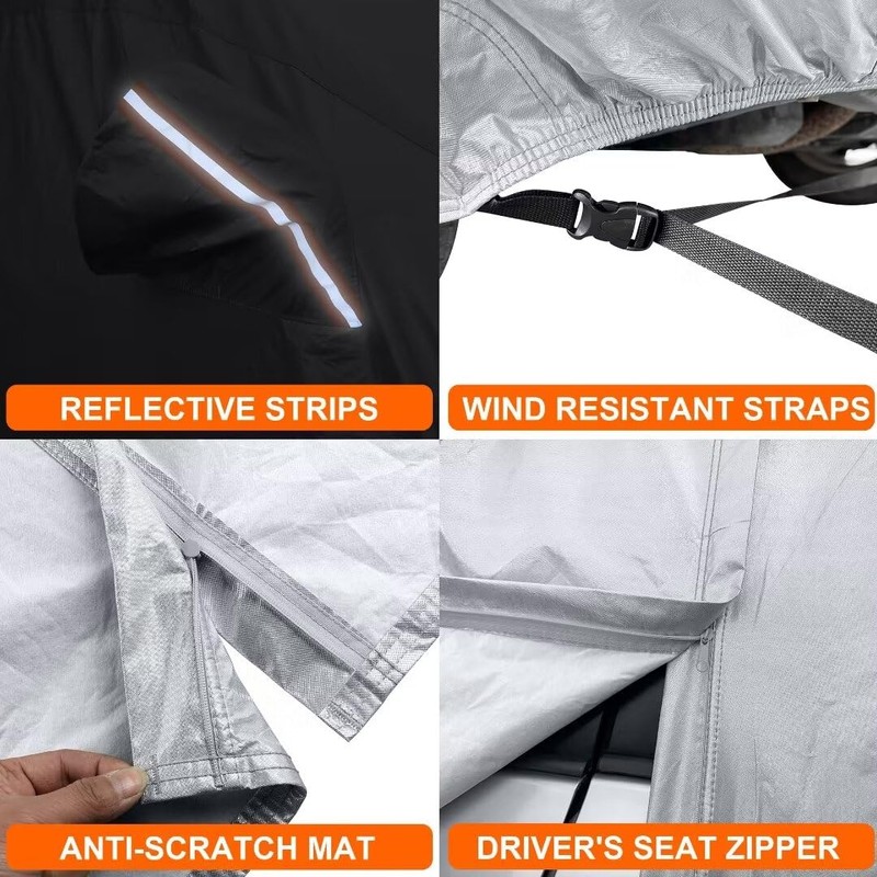 - DURABLE MATERIAL: Bonded and pressed with a durable, colorfast UV layer and scratch-resistant soft lining. Front and back with windproof inserts for weatherproofing, paint protection and longer life.