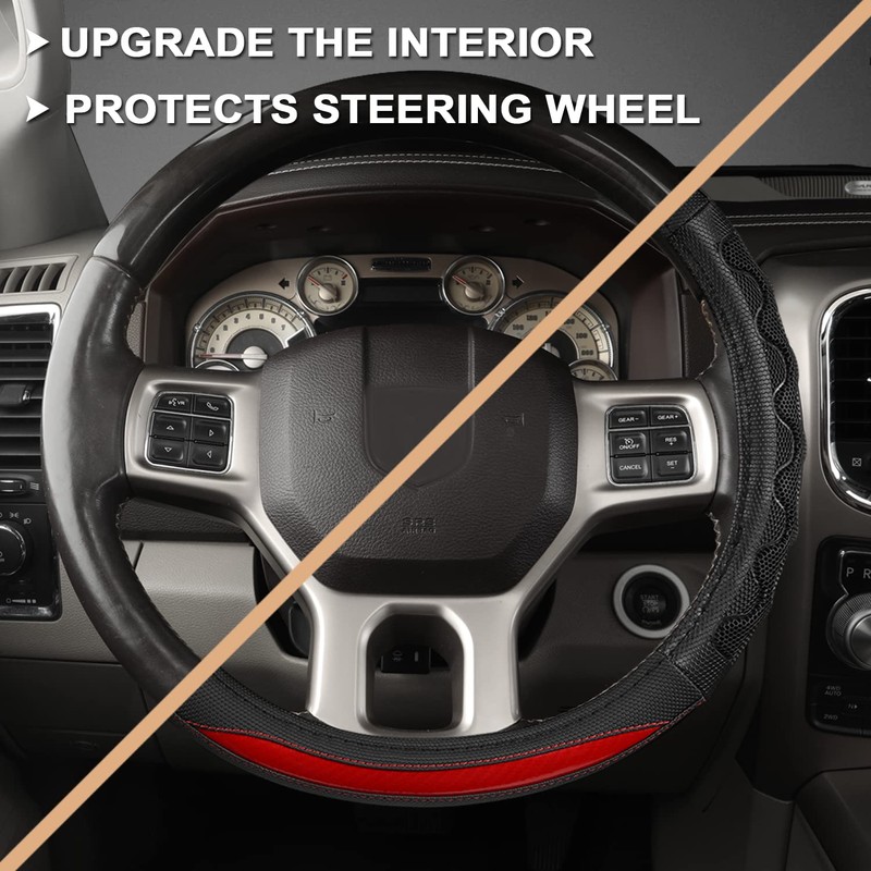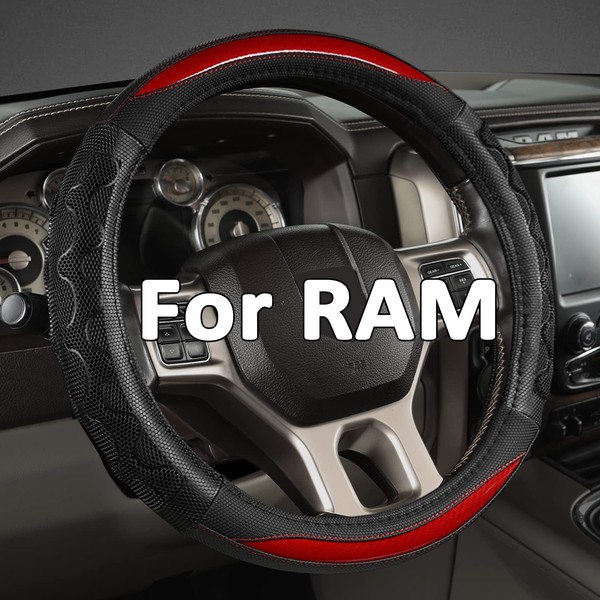 GIANT PANDA Steering Wheel Cover for Dodge Ram 1500 - Car Steering Wheel Covers for Dodge Ram 2500 3500 15.5-16 inch - Red