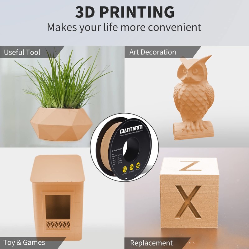 - PLA Filament 1.75mm: GIANTARM matte 3d printer filament to be strict tolerances, 1.75mm Diameter, dimensional accuracy + / - 0.03 mm, 1 kg spool (2.2lbs), consistent colors without traces of other color.