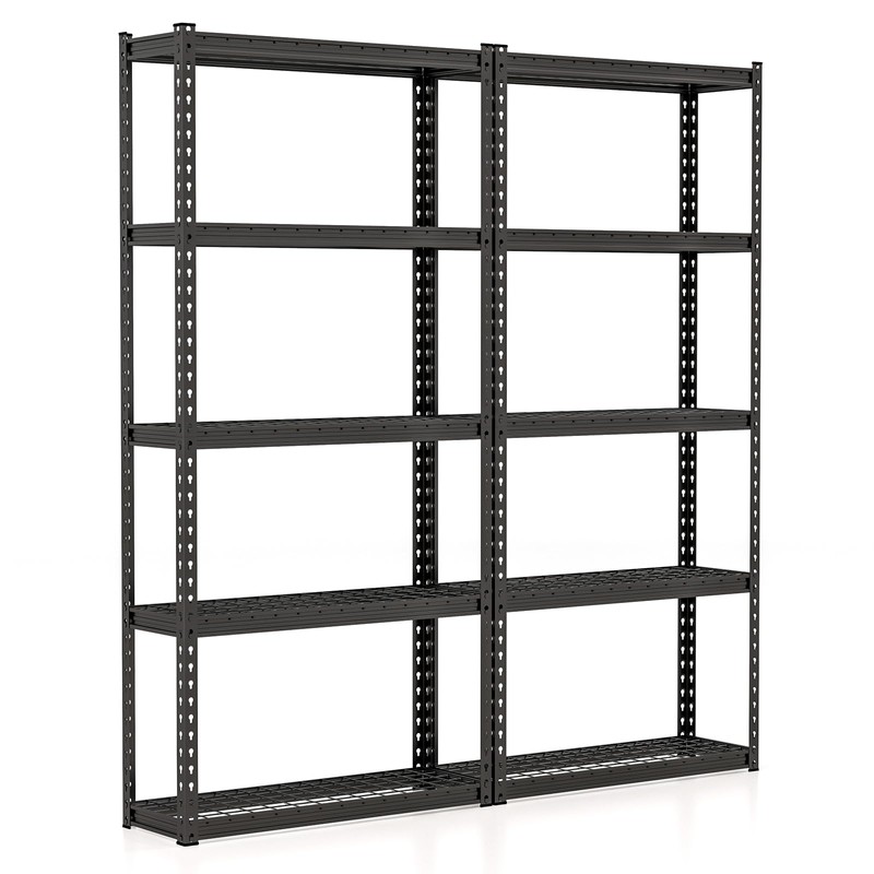 Giantex 2Pcs 5-Tier Storage Shelves, 35.5" x 12" x 72" Height Adjustable Metal Storage Utility Rack Shelf with Anti-Tipping Device, Heavy Duty Garage Shelving for Warehouse, Basement, Kitchen, Black