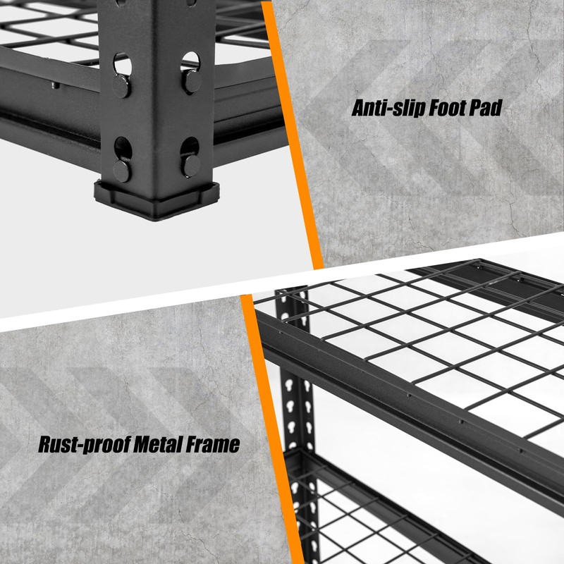 - [ Heavy-Duty Construction ]: Safe and Stable Construction: This storage rack features a safe anti-tipping device that provides extra stability and prevents any accidental tipping or tilting. Combined with the anti-slip foot pads and robust construction, this ensures a secure and stable structure capable of supporting up to 1100LBS of weight.