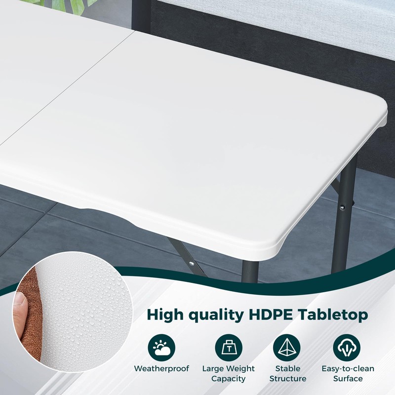 - [HDPE Tabletop & Stable Structure]: Constructed from high-quality HDPE with a stable triangular structure, this table ensures durability and reliability in various settings, weatherproof for indoors or outdoors. Its anti-slip foot pads ensure additional stability.