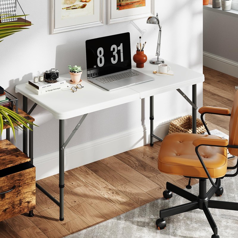 Giantex 48” x 24” Folding Table, HDPE Portable Fold-in-Half Table with 20”-29” Adjustable Heights, Spacious Tabletop, Safe Lock, Metal Frame Indoor & Outdoor Dining Table for Picnic Camping (White)