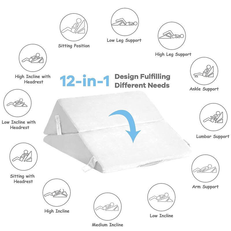 - 12-in-1 Design for Comfort: Our multipurpose wedge pillow set can be used at different angles to provide better support to your upper and lower back, head or even your knees. It can support your body curve at the correct position, thus to deliver a soft and resilient feel while reading in bed or playing video games on the sofa.