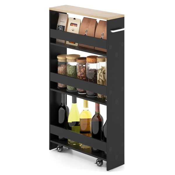 Giantex Kitchen Slim Storage Cart - 4 Tier Rolling Side Storage Cabinet w/Handle, Space Saving, Kitchen Utility Cart Tower Rack for Kitchen Laundry Narrow Places, Black