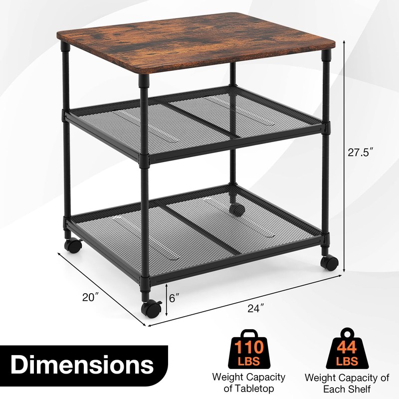 - 【Spacious Organization】: The printer stand offers 3 tiers of open storage space, including a generous tabletop for printers or scanners and 2 metal mesh shelves for books, files, ornaments, and office supplies. Keep your workspace neat and orderly with everything you need within arm's reach for enhanced productivity.