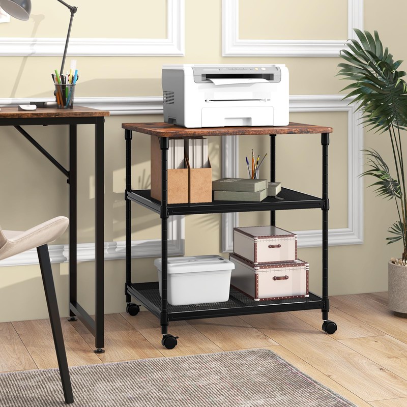 - 【Versatile Functionality】: Beyond serving as a printer stand in the office, this rolling cart adapts to various settings such as a kitchen storage cart, bedside table, or sofa side table, offering versatile storage solutions to meet different needs across multiple rooms in your home.