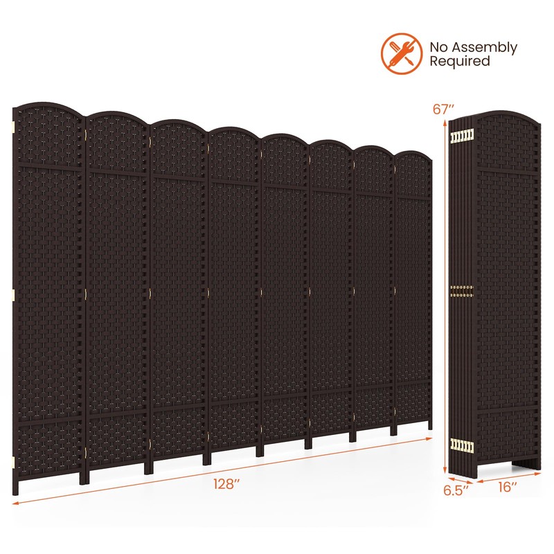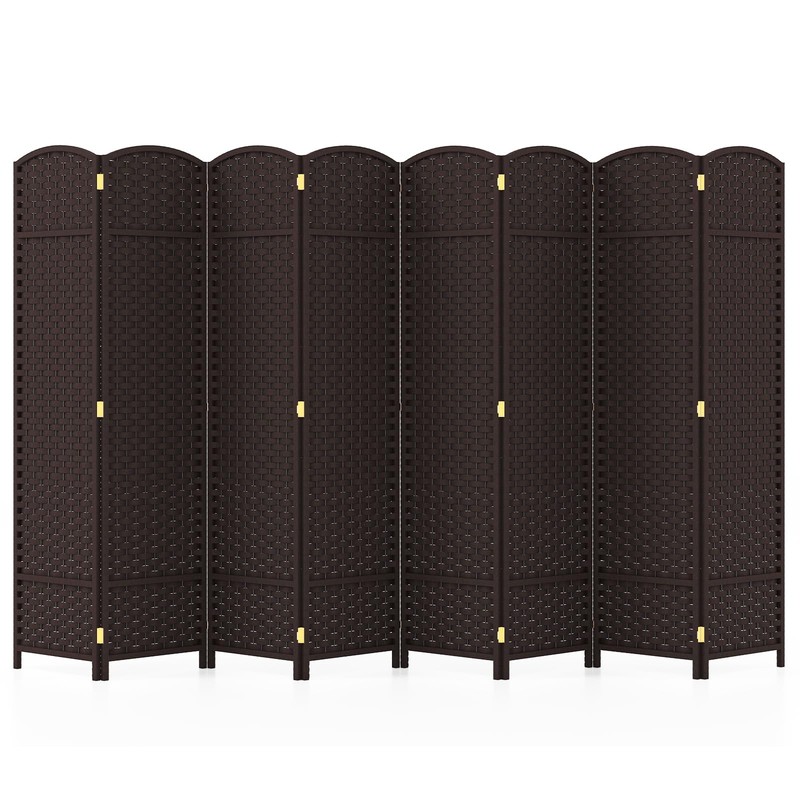 Giantex Room Divider 8 Panel, 5.6ft Folding Privacy Screen, Fully Assembly, Freestanding Wall Partition, Solid Wood Frame, Hand-Woven Texture, Room Dividers for Bedroom Office (Brown, 8 Panel)