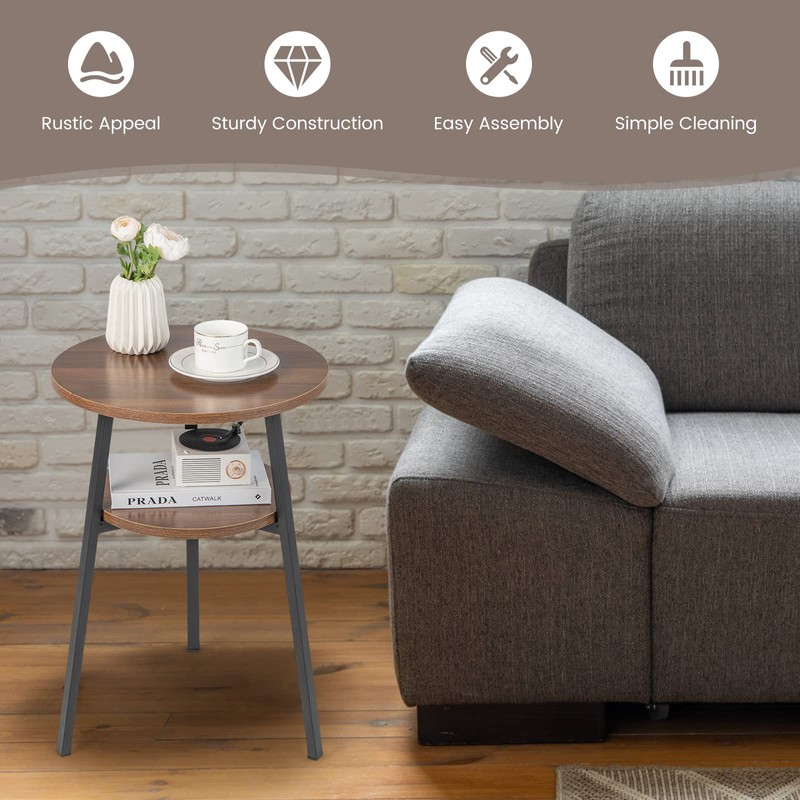 - [Heavy-duty Metal Frame]: To provide reliable support to the 2-tier shelves, the round end table features a robust metal framework that lasts for long thanks to the rustproof coating. In addition, the 3 legs form a stable triangular structure, with non-scratch foot pads at the base to prevent scratching floor.