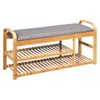 Giantex Shoe Rack Bench, Entryway 3-Tier Bamboo Shoe Organizer with Cushion, Max Load 330 LBS, Modern Stool Storage Shelf for Bedroom Living Room Hallway (Natural and Grey)