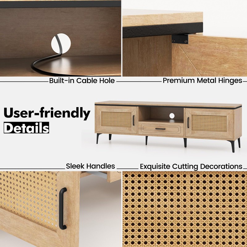 Giantex TV Stand for TV up to 65 Inches, Entertainment Center with 2 Cabinets, 1 Storage Drawer, Cable Hole, Open Shelf, Non-Slip Foot Pads, Boho Rattan Media Console Cabinet for Bedroom, Living Room