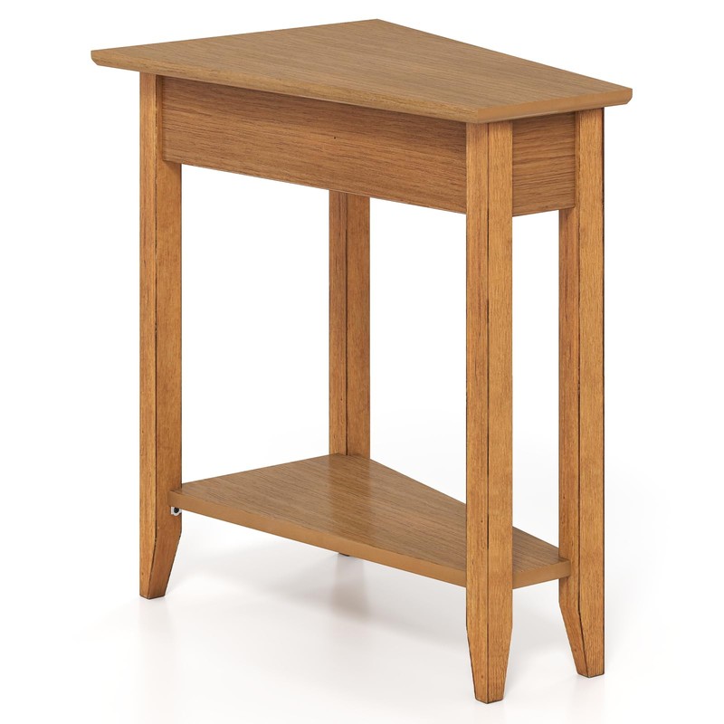 Giantex Wedge End Table, Triangle Side Table with Storage Shelf and Solid Wood Legs, 24.5" Tall Nightstand, Modern Narrow Accent Recliner Table for Small Space Living Room, Walnut