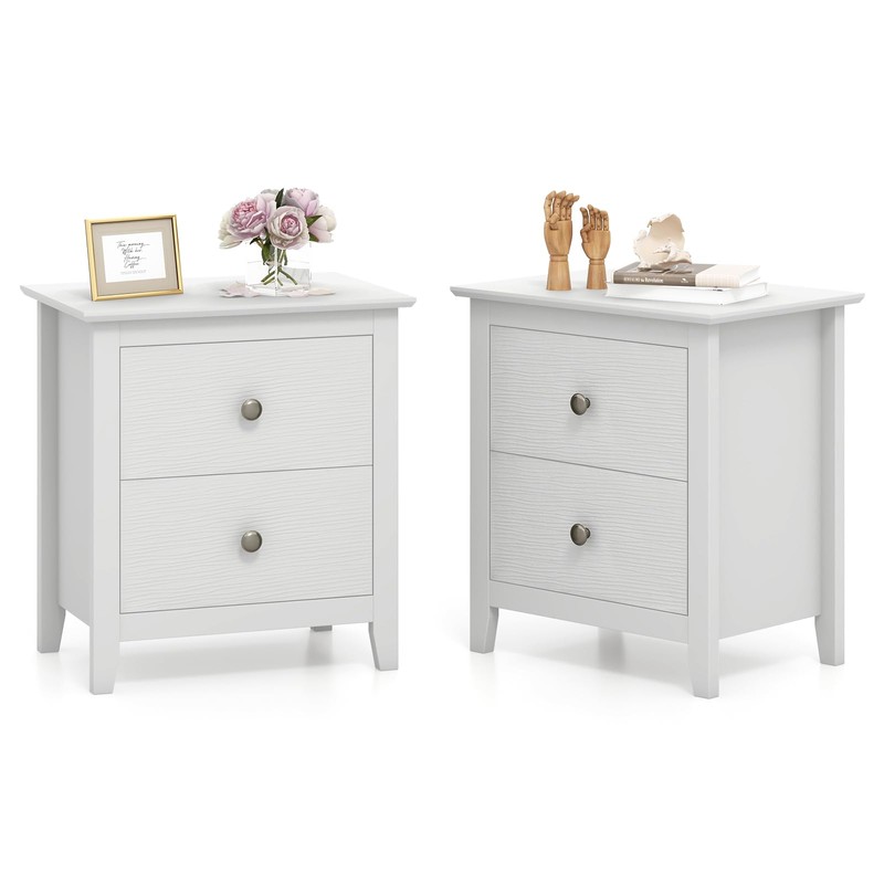 Giantex White Nightstands Set of 2, Modern 2 Drawers Night Stands with Handles, Sofa Side Table with Sturdy Legs for Small Spaces, College Dorm, Kids’ Room, Wooden Bedside Tables for Bedroom, White