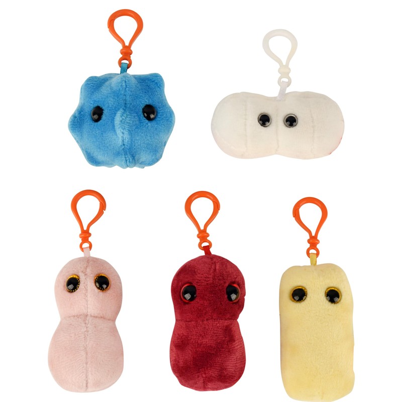 - Clip them onto your backpack, keys or anywhere you go! Includes 5 microbes. Each microbe measures 3 inches