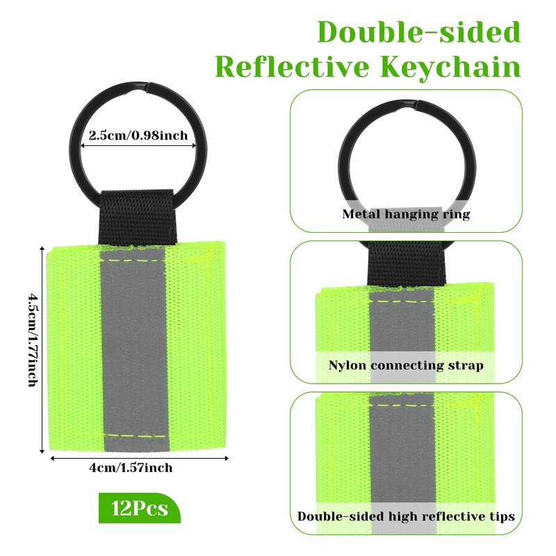 - 【Sufficient Quantity & Suit Size】You will receive totally 12 pieces of safety keychain accessories, the sufficient quantity can satisfy your different needs in multiple occasions, can be replaced or matched at any time. The size of reflector nylon key chain is approx. 4.5 × 4cm, the diameter of keyring is about 2.5cm, proper size can be carried around and it can be hung on bags, pet collars, wheelchairs, etc.