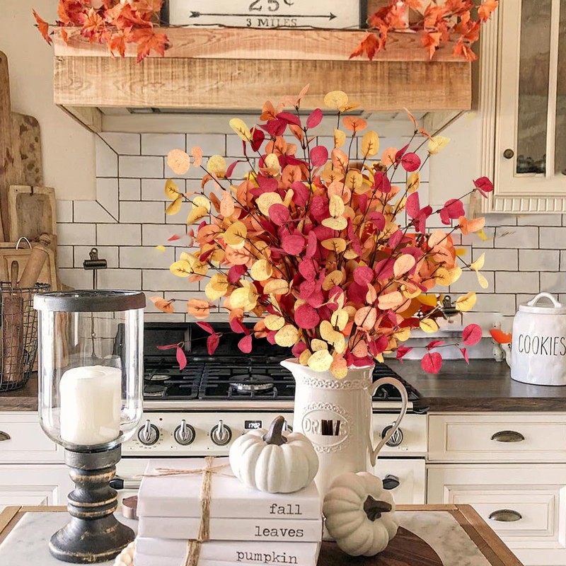 - 【Fall Decoration for Home】Fall eucalyptus stems are very realistic and suitable for indoor and outdoor decoration, can be placed in your fall home, on the fireplace, office, DIY bouquets, table centrepieces, bring you a strong sense of autumn atmosphere.