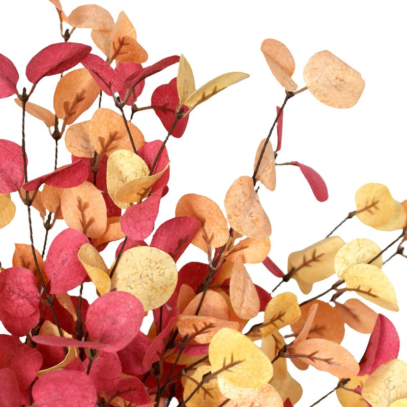 -Our artificial eucalyptus stems are adjustable, it is easy to trim them with scissors or pliers to fit your desired size or twist them to adjust the height and shape of the branches that you want. -Our artificial fall eucalytus stems have autumn leaf color, bring you the rich autumn atmosphere, perfectl for fall centerpieces or freestanding decorations. -Autumn eucalyptus leaves showcase a rich array of color changes, gradually transitioning from green to yellow, orange, and even red, creating a vibrant display like a painting by nature. Whether it’s a single leaf or a bunch, they can bring a natural artistic vibe to your home space. 【Notice】
