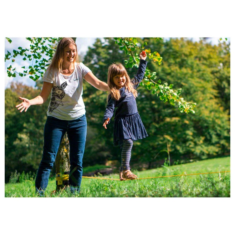 - No matter if you are a rookie or a pro, the in-between slackline set guarantees fun and a great challenge.