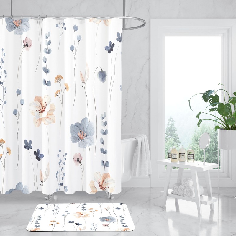 Gibelle Floral Bath Mat Rug Set 2 Piece, Cute Flower Super Absorbent Quick Dry Bathroom Rug Set, Non Slip Rubber Backed Bathroom Floor Mat for Tub Shower Sink (17"x24"+17"x24", Blue)