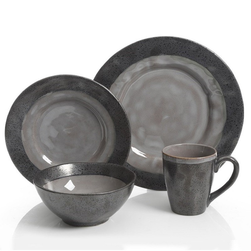Gibson Dragonstone 16 pc Dinnerware Set Grey Stoneware, Gray -