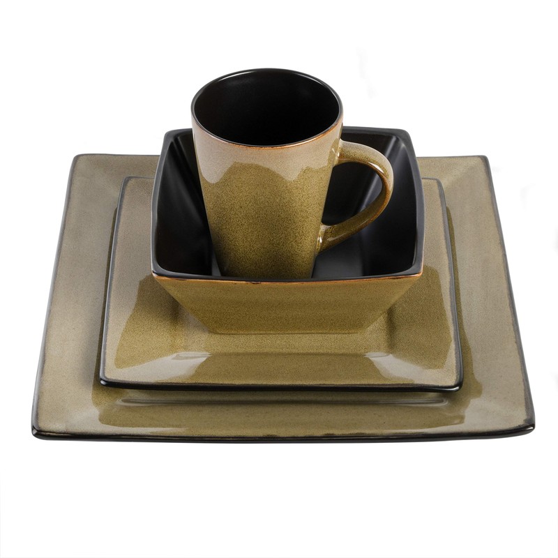 Great size and shape offers a large backdrop for creating wonderful foodscapes on reactive glaze. Perfect addition to any kitchen! . Gibson’s 16-Piece Kiesling Dinnerware Set allows you to experience Gibson’s incredible reactive glaze right on your tabletop. With high-end stoneware and gorgeous reactive glaze, the Kiesling Dinnerware Set is an art collection for your tabletop. The design is bold, but also elegant.