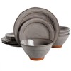 Gibson Elite Terranea Round Reactive Glaze Terra Cotta Dinnerware Set, Service for Four (12pcs), Grey