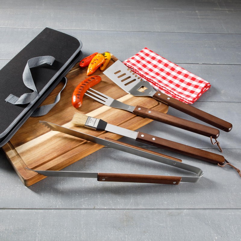 Gibson Home Basics Barbeque, 4-Piece BBQ Tool Set, Walnut