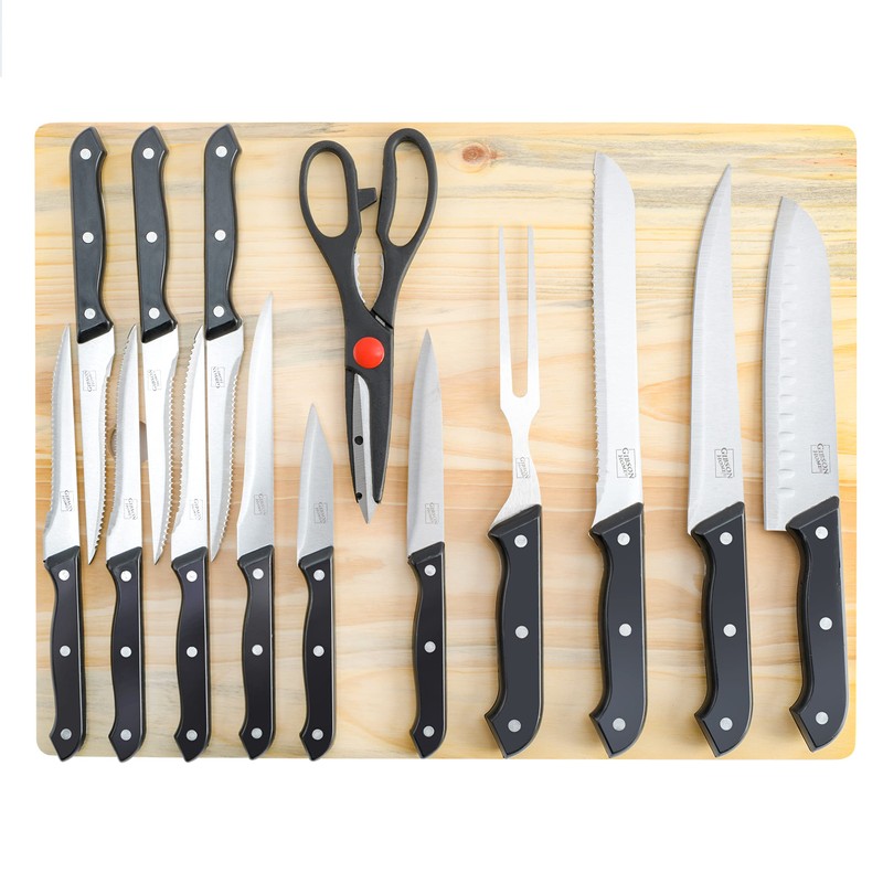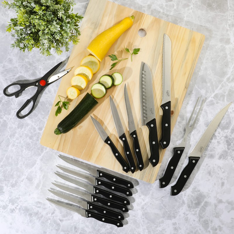 Gibson Home Wildcraft Kitchen in a Box 15 Piece Cutlery Set W/Cutting Board, Black