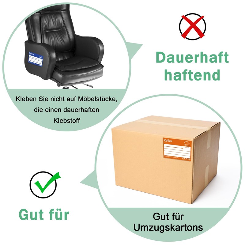 - Hochwertiges Material: Die Aufkleber für Umzugskartons sind aus hochwertigem Papier hergestellt. Der permanente Klebstoff sorgt dafür, dass Ihre Umzugsaufkleber während des Umzugs klar und fest bleiben. Umzugsunternehmen können Zeit sparen und die Gegenstände effizient in den richtigen Raum abladen. Mit den entsprechenden bunte etiketten selbstklebend sticker für umzugskartons sind Sie in der Lage zu erkennen, was sich darin befindet.
