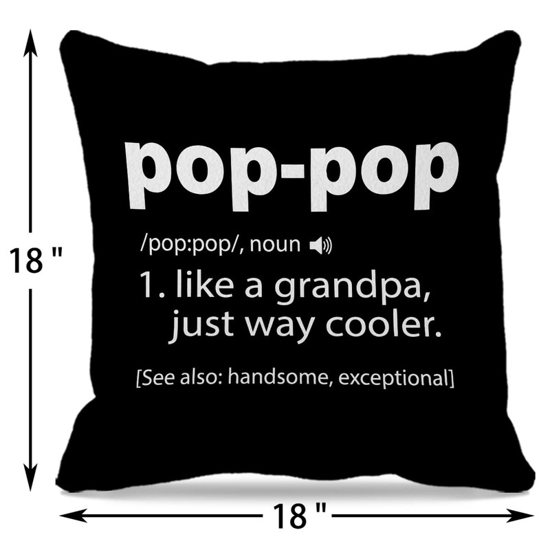 GICHUGI Grandpa Themed 18″×18″Pop-Pop Definition Decorative Throw Pillow Case for Home Living Room Sofa Couch Bed Decor,Grandpa Grandfather Birthday from Granddaughter Grandson