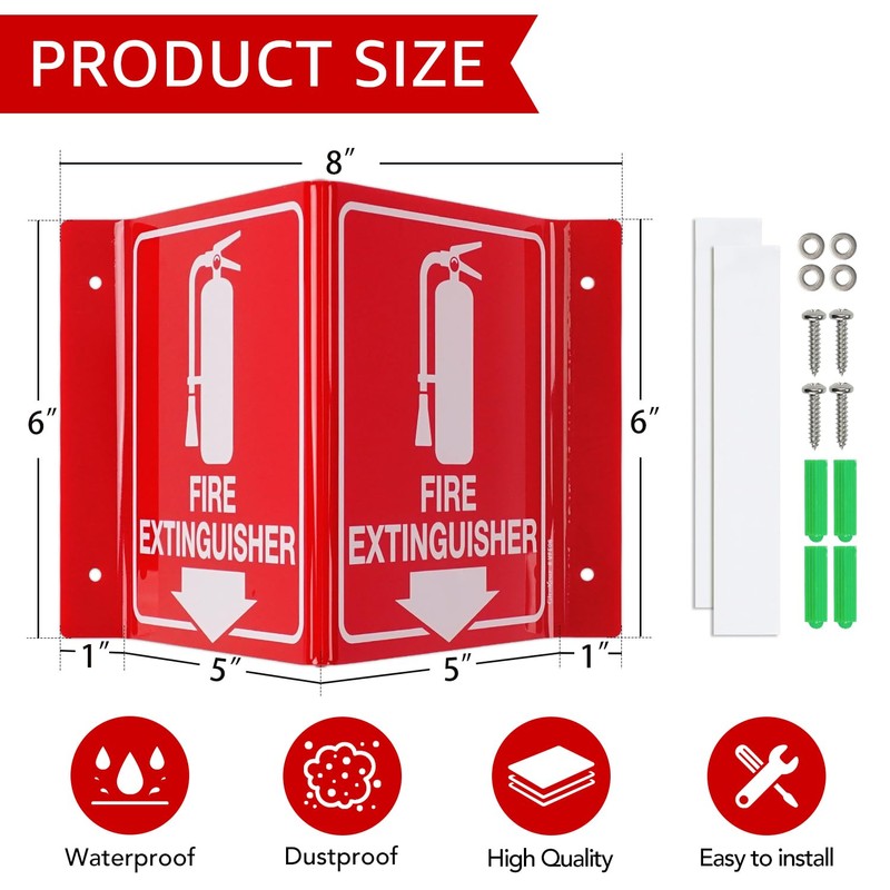 - Includes: Each package includes 4 fire extinguisher signs, 8 double-sided tapes, and matching screws and expansion tubes.