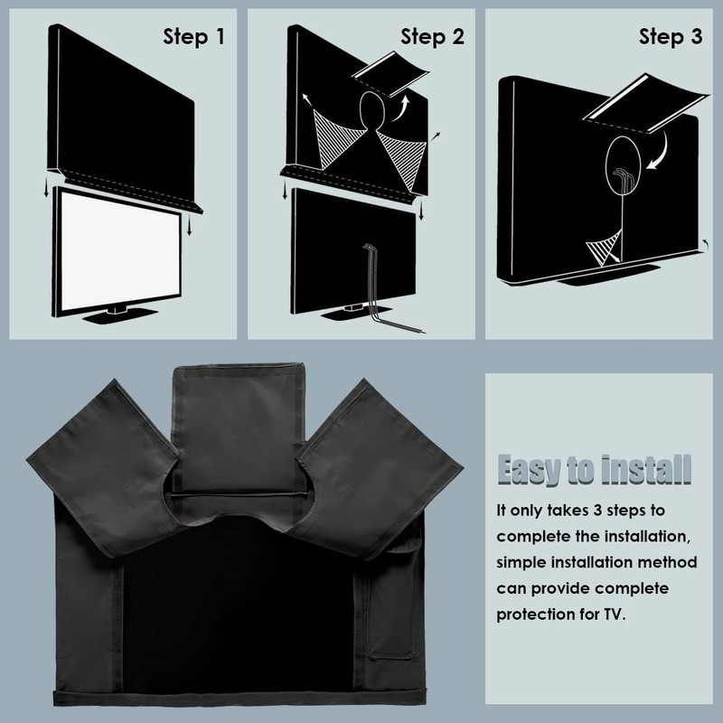 - Our TV covers have variety of sizes, you can choose according to the size of your TV. The TV cover is also suitable for various TV accessories, so don't worry about not fitting.