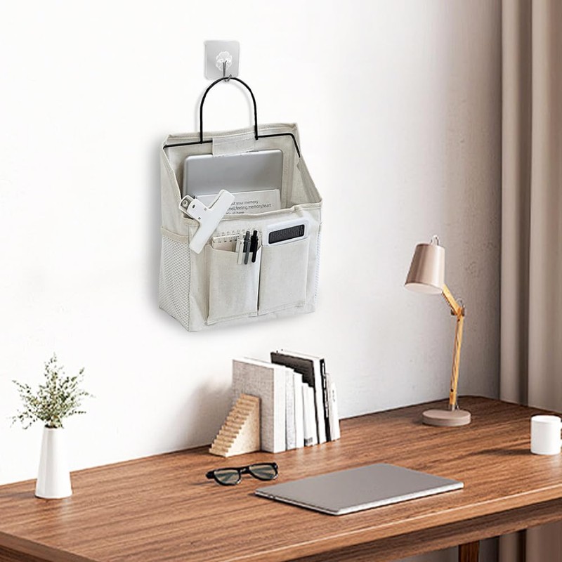 - SIMPLE STYLISH DESIGN The headboard storage basket features small compartments, two front pockets, a spacious main pocket and visible mesh side pockets, providing flexible storage options. With the included hook, it can be easily hung anywhere and is therefore ideal for small spaces.