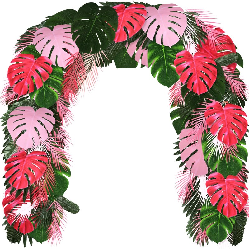 Giegxin 46 Pcs Tropical Artificial Palm Leaves Monstera Decoration Green Hot Pink Set for Flamingo Luau Hawaiian Aloha Theme Party Summer Beach Tropical Birthday Baby Shower Wedding Home Decor