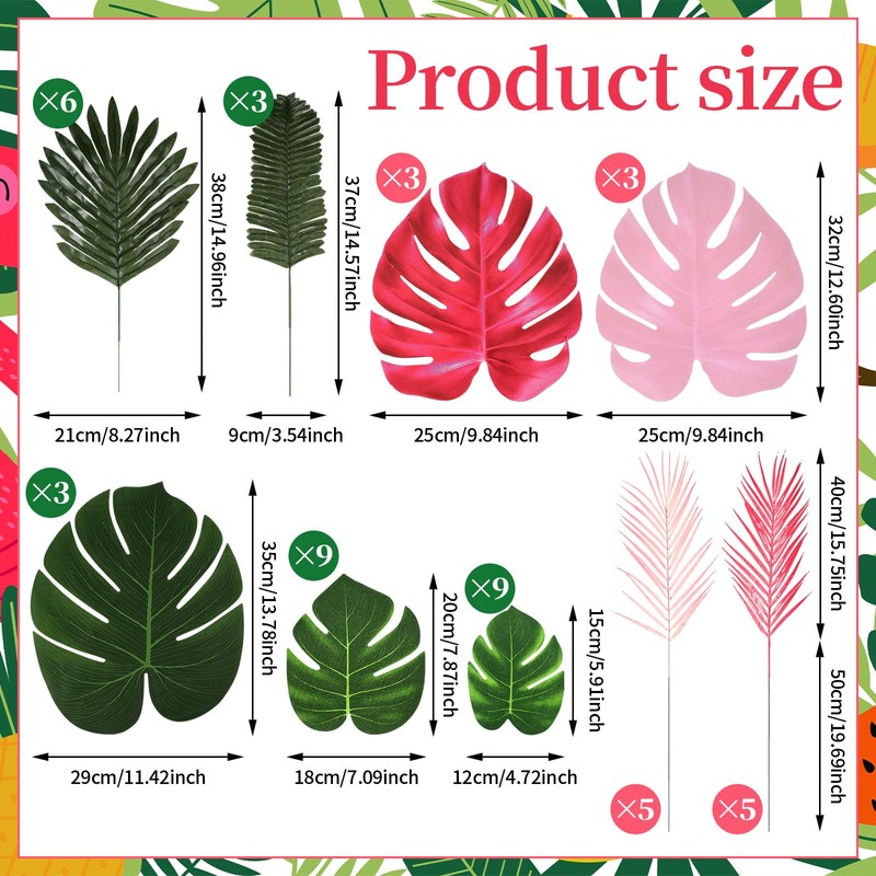 - Hawaiian Theme Party Decorations: our Hawaiian decorations are full of tropical elements, and the palm leaves and monstera leaves are full of vitality and energy; The tropical party decorations make us feel like chasing and playing on a tropical beach; Enjoy this tropical time with your family and friends