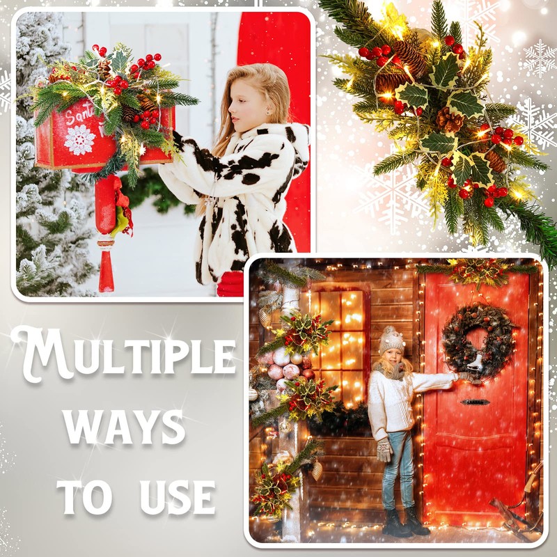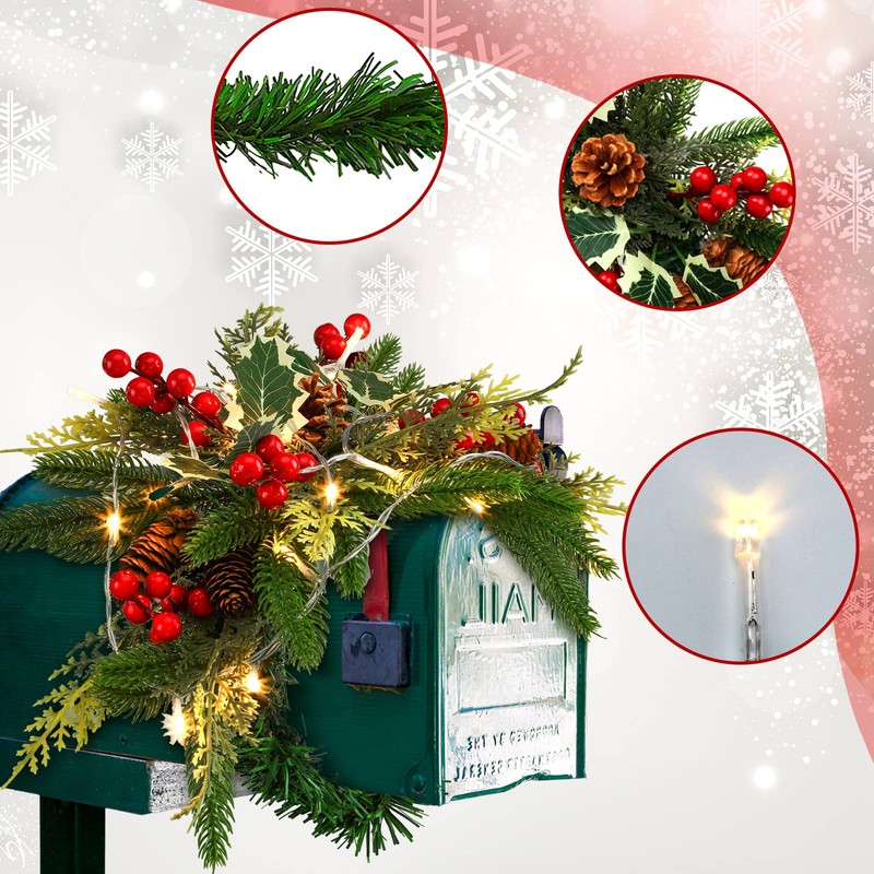 • Ideal Holiday Decoration: our mailbox swag with lights meets the Christmas theme and spreads holiday joy, is an ideal choice for home decoration, not only for mailboxes, but also for various scenes, such as restaurants, entrances, corridors, porches, handrails and so on