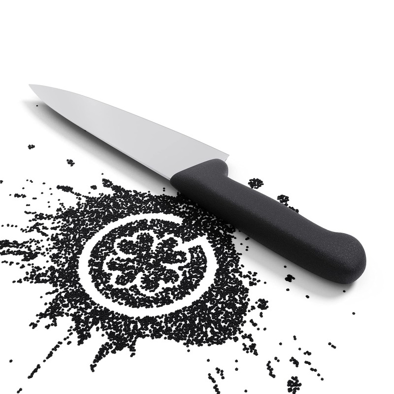 - Das Kochmesser der Basic Black Serie ist ein Allzweckmesser, welches zum Schneiden, Wiegen, Hacken von Gemüse, Fleisch und Fisch eingesetzt wird. Das Messer wird hauptsächlich in der verarbeitenden Lebensmittelindustrie vom Profi eingesetzt
