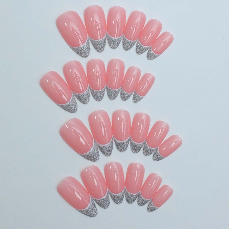 Gifiky Short Almond Press on Nails Nude Fake Nails French Nails Tips Full Cover Bling False Nails for Women and Girls 24Pcs