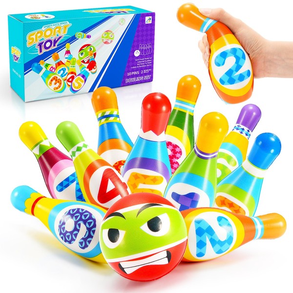 - 【Sicher & Langlebig】: Das Bowling-Set ist aus PU-Material, kein Lärm beim Spielen, glatte Oberfläche und weiche Textur, so dass Sie sich keine Sorgen machen müssen, dass Ihr Kind verletzt wird.