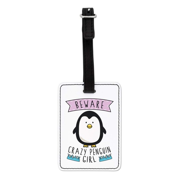 Gift Base Beware Crazy Penguin Girl Visual Luggage Tag with Black Strap