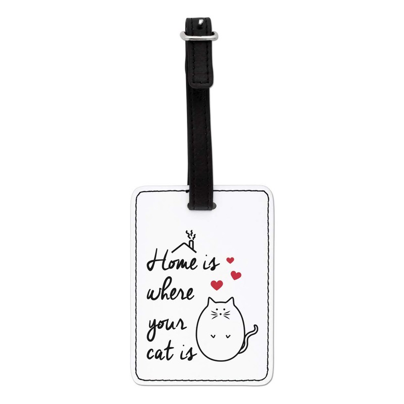 Gift Base Home Is Where Your Cat Is Optical Luggage Tag with Black Strap