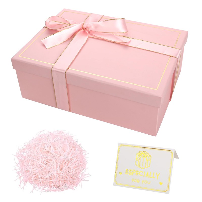 Gift Box, Gift Box with Lid 25x18.5x8.8cm with Lids & Ribbon Gift Box Large Closure Party Present Boxes Designed for Christmas, Weddings, Valentine's Day, Present Birthdays (Pink)