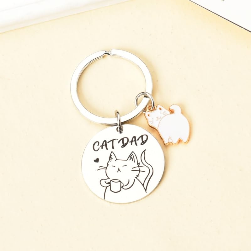 Gift for Cat Dad Keychain Cat Owner Gifts for Men Cat Themed Gifts for Cat Lovers Birthday Christmas Gift for Male Veterinarian Pet Cat Father Person Gifts