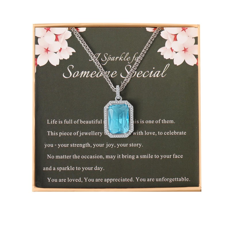 Gift for Wife & Mum – Elegant Thoughtful Skin-Friendly Necklace – Sparkling Cubic Zirconia Pendant – Ideal for Birthday, Anniversary & Special Occasion – Gift Box Included (Blue)