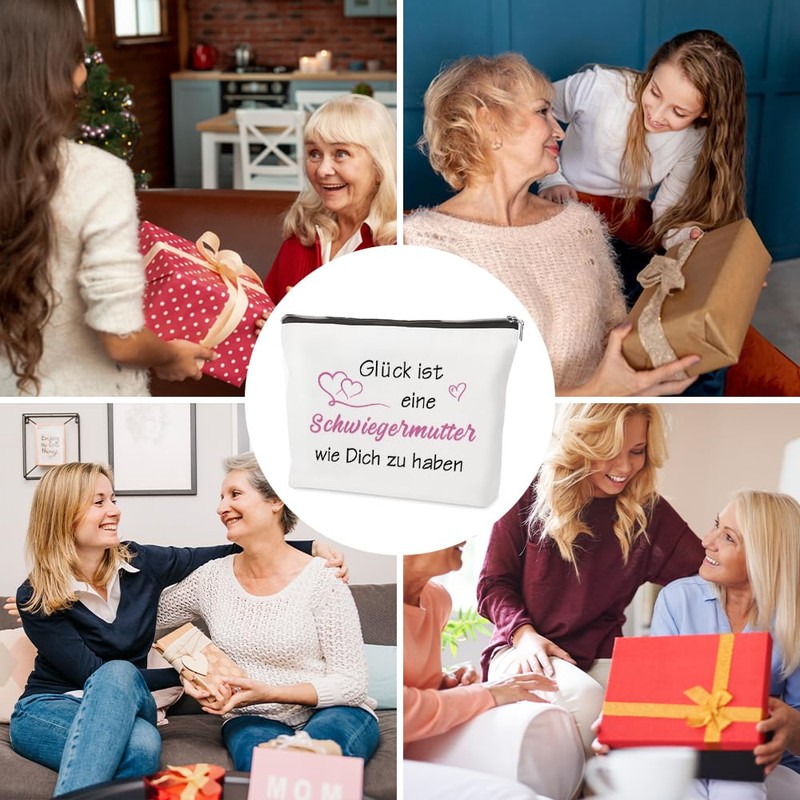 - Gift ideas mother-in-law: the words "Glück ist eine Schwiegermutter wie Dich zu haben" are engraved in the cosmetic bag. With the cosmetic bag, you can show your appreciation and love to your mother-in-law. Gift ideas for mother-in-law, extraordinary gifts mother-in-law, special gifts mother-in-law, gifts father in law, Mother's Day gifts for mother-in-law personalised, best mother-in-law gift