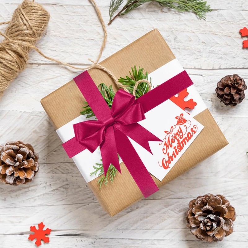 - Product size: the satin ribbon is 25 mm (2.5 cm) wide and 22 metres long, gift ribbon wide can be easily stored, used in a variety of scenarios such as wedding, holiday party, Christmas home decor, meet your daily needs. You can use ribbons to wrap gifts for parents, friends, and relatives on Valentine's Day, Mother's Day, Father's Day, Thanksgiving, Halloween, Christmas. Gift ribbon Christmas red, red ribbon Christmas.