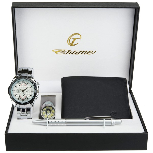 Gift Set Men's Watch White- LED Lamp LED- Wallet -Pen