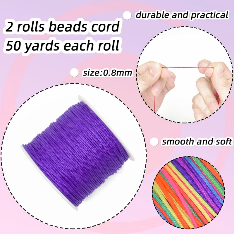 - Package: There are 2 rolls beads cord included, 50 yards each roll. The diameter of bracelet string is about 0.8mm, perfect for all your beading projects.