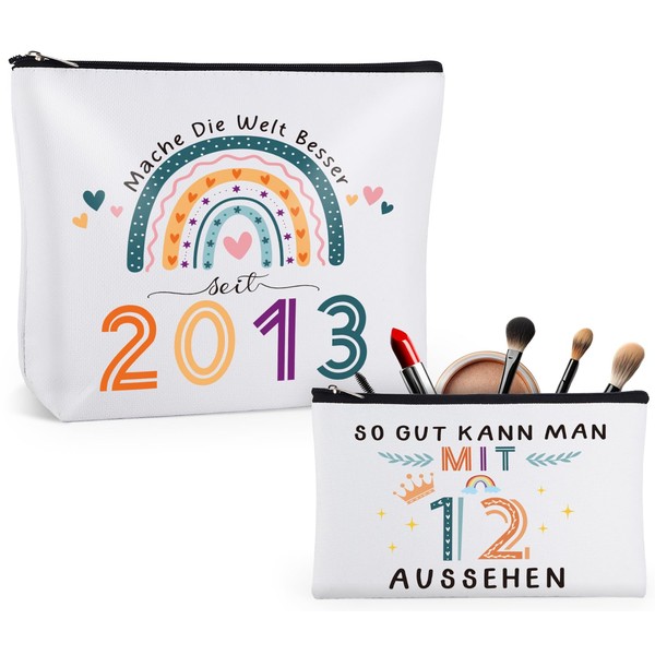 - Humorous gifts for girls 12 years: The pack of 2 waterproof cosmetic bags are the perfect gift for girls celebrating their 12th birthday! Elegantly designed to declutter personal care items, with a humorous inscription with her birth year "2013", this fun gift for 12 year old girls, friends, sisters and best friends will laugh!