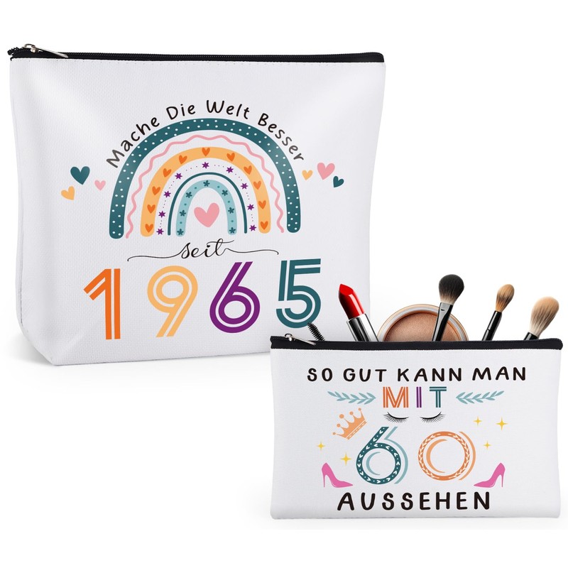 - [Humorous 60th Birthday Gifts] The pack of 2 waterproof cosmetic bags are the perfect gift for women celebrating their 60th birthday! Elegantly designed to declutter personal care items, with a humorous sentiment with her birth year "1965", this fun 60th birthday gift will make moms, wives, sisters and best friends laugh!